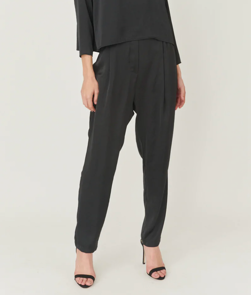 Classic and basic trouser with an elastic waist and two side pockets in diagonal position.