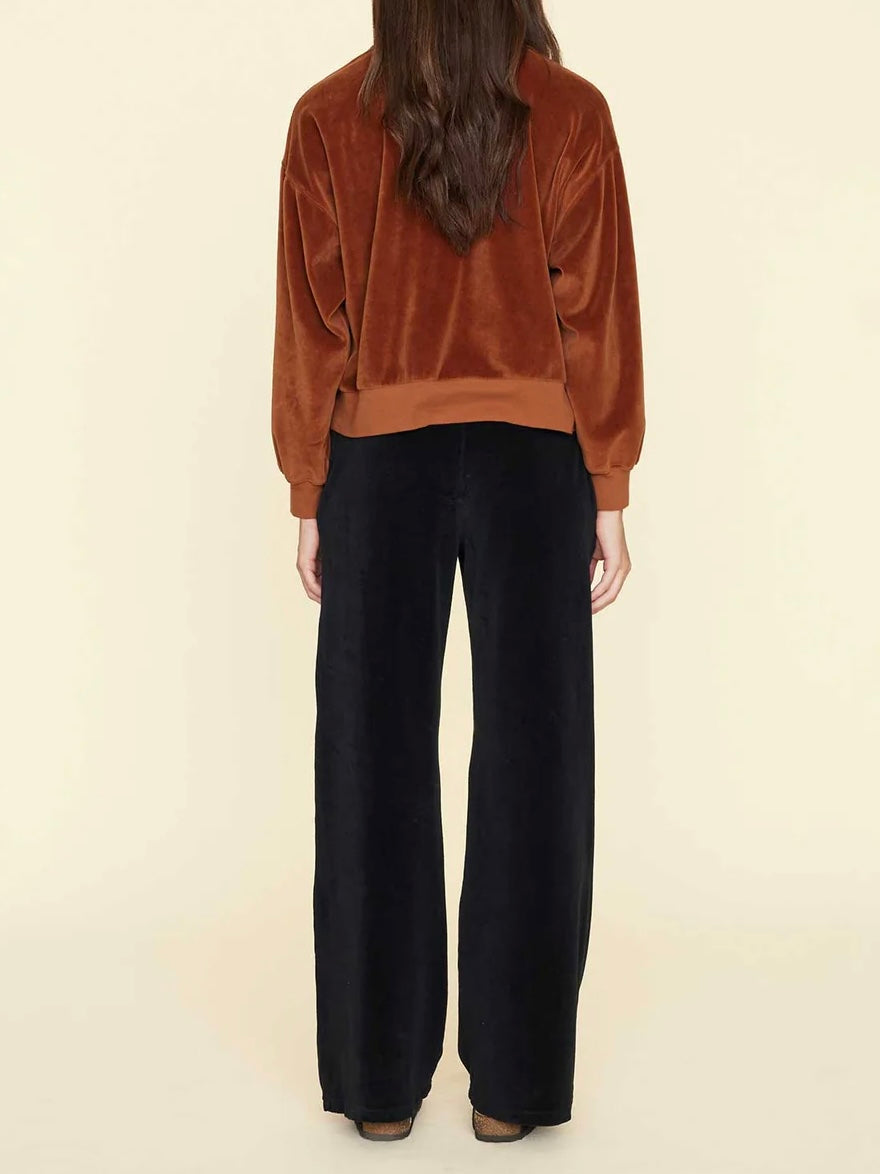 Blast from the Past. Mavis is new this season in our plush velour. Mavis is a pull on sweatpant with a wide leg, elasticized waist, and side seam pockets. Pair back with the Huxley Velour Sweatshirt for the ultimate nostalgic feel.